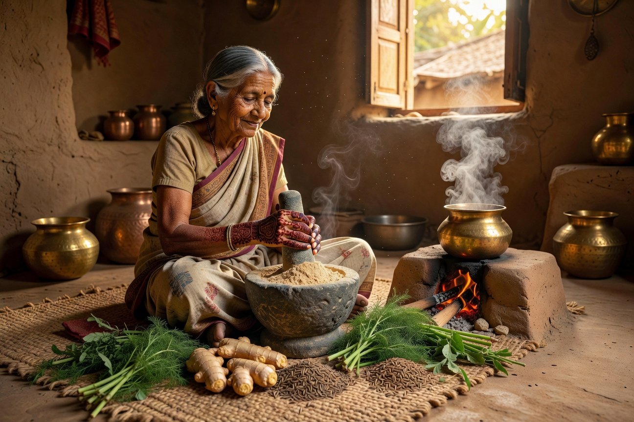 Asafoetida leads this eight-herb mix for Vata gut issues. Key herbs: Hing, Ajwain, Jeera. Procedure: ½ tsp with ghee before lunch. Benefits: Relieves flatulence, colic, IBS. Home tips: Sprinkle on dal. Science: Antispasmodic effects confirmed in trials. Precautions: Use sparingly if pregnant.