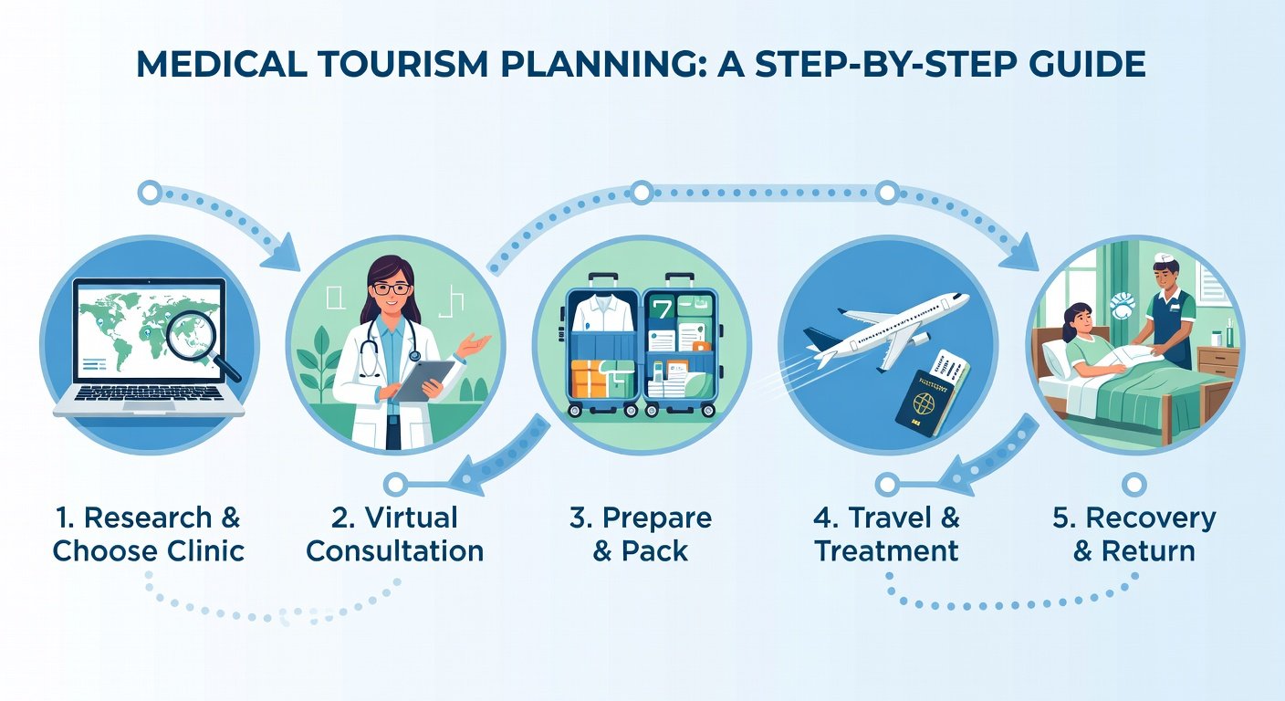 - Book flights/hotels near clinic; opt for recovery villas with nursing.